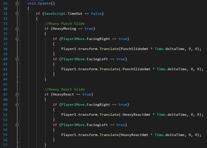 In addition to the combat mechanics, player movement plays a crucial role in this project. In this section of the script, we focus on creating a player movement system that fits our fighting game. The OppPosition variable on line 136 stores the opponent's location, allowing the character to always face their enemy. To achieve this, we use a coroutine on lines 134 and 138, enabling the player to flip their character and look left or right, while the AI also adjusts accordingly. Since the player can only move left and right, we use the horizontal input (line 146) to control movement. Additionally, we implement walking animations for the left and right movement.